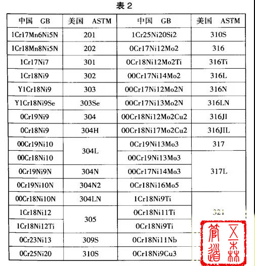 七、奧氏體不銹鋼牌號(hào)對(duì)照(表2)