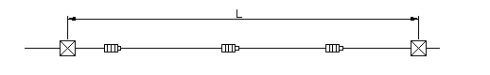 如圖所示,安裝一次性補償器的管段應(yīng)與其他管段用固定墩隔開,以確保吸收定長管道預(yù)熱伸長量。為確保其精確,可在預(yù)熱前計算定長管道理論伸長量,然后在各一次性補償器上作出標記,使各個一次性補償器壓縮量之和等于定長管道的計算伸長量,待預(yù)熱伸長到位時,將補償器二次焊口焊接固定。管道在運行中不再有伸縮運動,其溫度變化引起的管道長度伸縮將轉(zhuǎn)化為管道的內(nèi)應(yīng)力。