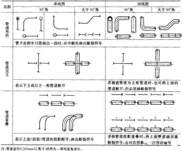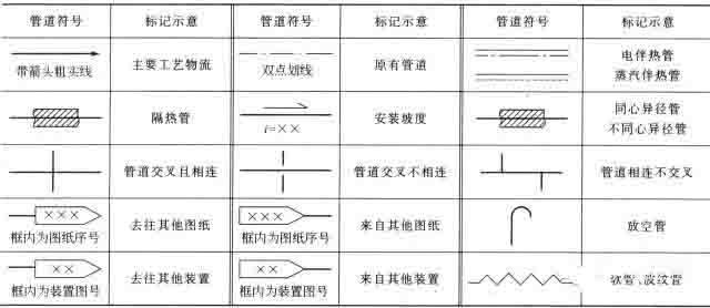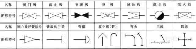 常用管道符號圖例,見下表。