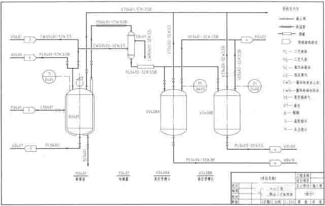 看標題欄和圖例中的說明,了解圖樣名稱、各種圖形符號、代號的意義及管道的標注等。掌握系統(tǒng)中設備的數(shù)量、名稱及位號,了解物料的工藝施工流程線。