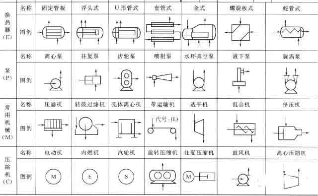 常用設備、機器圖例見下表。
