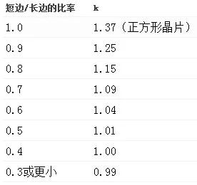 如果是環形晶片,則不使用k值,而是使用晶片直徑(D)代替長度項: