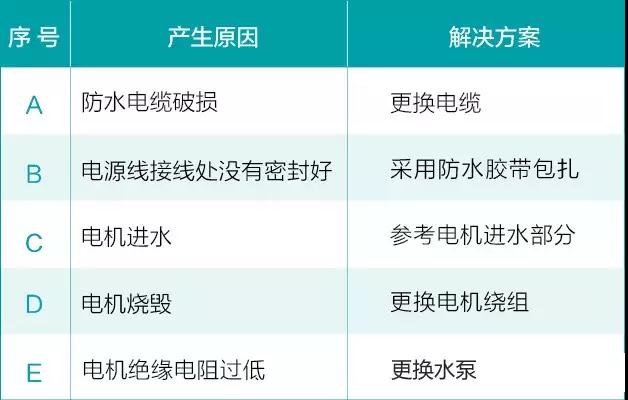 2、水泵電機(jī)電源線接線沒有密封好進(jìn)水;