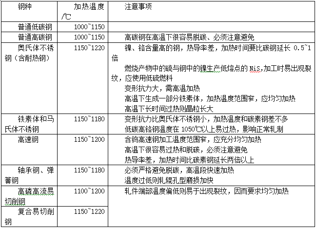 特別注意的是:對于碳鋼加熱溫度一般不能大于1300℃,大于此溫度,其一,鋼坯表面的氧化鐵皮會熔化(純氧化鐵皮的熔點為1377~1565℃,含有雜質時降到1300~1350℃),從鋼表面上掉下來,露出新的表面,燒損迅速增加。其二,當加熱溫度大于1300℃時,鋼坯很有可能會出現過熱或過燒。生產其它鋼種時更應該注意最高加熱溫度。