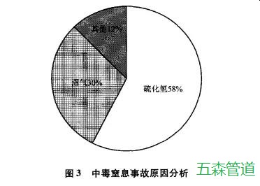 分析研究中分別對中毒窒息的物質(zhì)進(jìn)行了統(tǒng)計與分類。結(jié)果表明占總事故數(shù)57%的是硫化氫引起的中毒事件。占總事故31%的是沼氣引起的中毒事件。其他原因引起的事故占12%,經(jīng)過分析還可以發(fā)現(xiàn)的是硫化氫引起的主要是中毒事故,沼氣引起的主要是窒息事故。